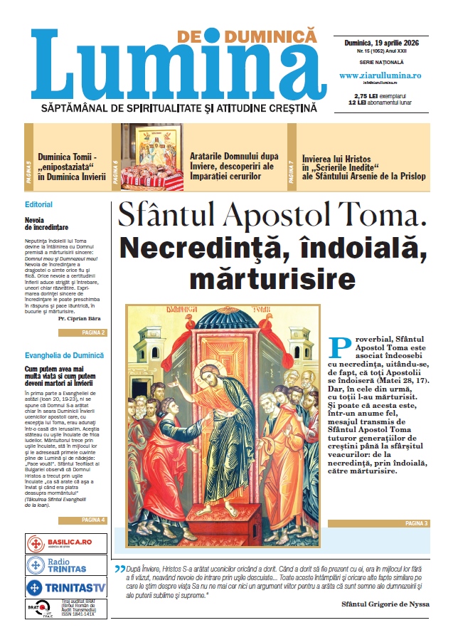 În ajunul sărbătorii Învierii Mântuitorului nostru Iisus Hristos, astăzi, 11 aprilie 2026, la Catedrala Patriarhală istorică a avut loc ceremonia solemnă în cadrul căreia Preafericitul Părinte Daniel, Patriarhul Bisericii Ortodoxe Române, a primit Sfânta Lumină adusă de la Ierusalim. Candela purtătoare a acestui dar sfânt a fost adusă de la Aeroportul Internațional „Henri Coandă” din Otopeni de o delegație condusă de Preasfințitul Părinte Paisie Sinaitul, Episcop‑vicar patriarhal. La miezul nopții, Preafericirea Sa va dărui Sfânta Lumină credincioșilor prezenți la slujba Învierii, săvârșită pe Colina Bucuriei.