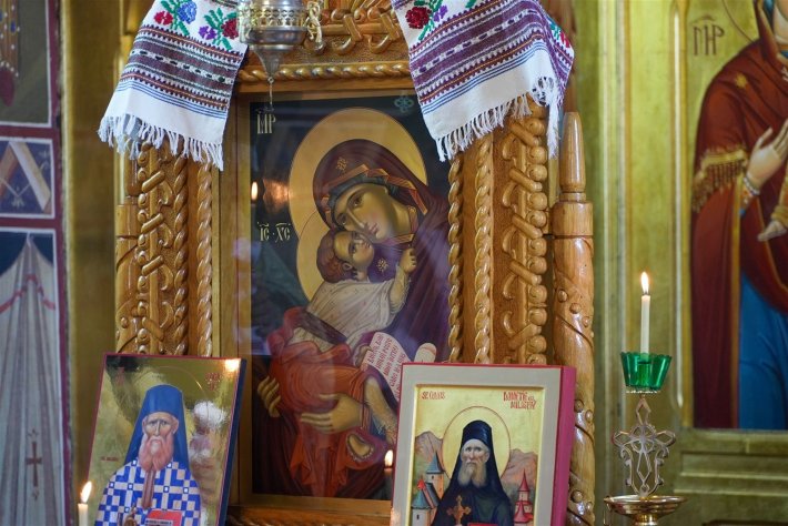 În interiorul bisericii atrage atenția o frumoasă icoană, foarte atent și îngrijit lucrată, a Sfântului Dometie cel Milostiv de la Râmeț, originar din acest sat. Recunosc că mă încearcă o emoție puternică, mă aflu în prima topografie a sacrului. Spațiul acesta al bisericii, împrejurimile sale, ulițele satului, școala aflată peste drum au fost străbătute de tânărul Stelian Manolache, mai târziu Părintele Dometie. Preotul paroh simte tulburarea mea și mă asigură că Părintele Dometie a slujit de-a lungul vremii în acest lăcaș. Și nici nu putea fi altfel, se întorcea cu regularitate pentru a-și vizita familia rămasă acasă, în Bărăgan. Ba mai mult, îmi spune părintele Radian zâmbind, se pare că se oprea chiar și la „bufetul”, cum se spunea atunci, din sat și-i mustra blând pe cei care zăboveau prea mult pe acolo, după cum depun mărturie bătrânii satului, care l-au cunoscut personal.