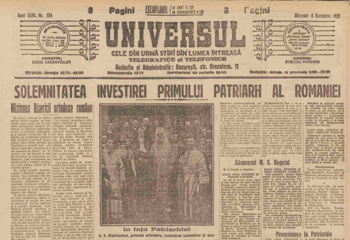 Tot premierul insistă şi pe persoana primului Patriarh al Bisericii Ortodoxe Române, Miron Cristea: „Ţin să salut cel dintâi pe cel pe care Senatul l-a desemnat ca patriarh al României Mari, al bisericei româneşti. O fac cu simţimintele de dragoste şi de recunoştinţă pe care le inspiră tuturor românilor trecutul comun al neamului, şi al bisericei noastre. (…) Actul îndeplinit astăzi va fi primit astfel cum a fost primit în Senat, cu dragoste şi cu mulţumire, de toată suflarea, nu numai de suflarea românească, de toată suflarea cinstit hotărâtă să reprezinte în aceste regiuni ale lumii spiritul de pace, de linişte de care au nevoie” („Votarea legii pentru înfiinţarea patriarhatului”, în Universul, ediţia din 15 februarie 1925, anul XLIII, nr. 37, p. 3).