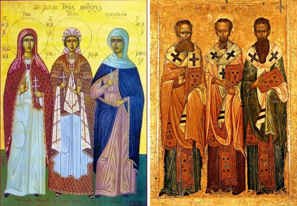 ale Sfinților Trei Ierarhi, ca femei evlavioase care au fost învrednicite de Dumnezeu să devină mamele celor mai mari teologi și sfinți ai Bisericii. Ele au fost percepute ca niște instrumente divine prin care au dăruit Bisericii înțelepții ierarhi și învățători, purtători de Duh Sfânt, după cum sunt elogiate de Atanasie Skarmoghiani.