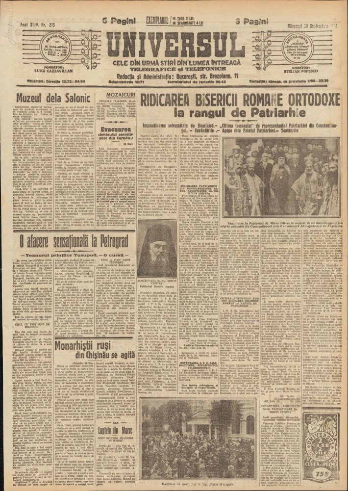 Recunoașterea Patriarhiei Române de către Patriarhia Ecumenică în presa vremii