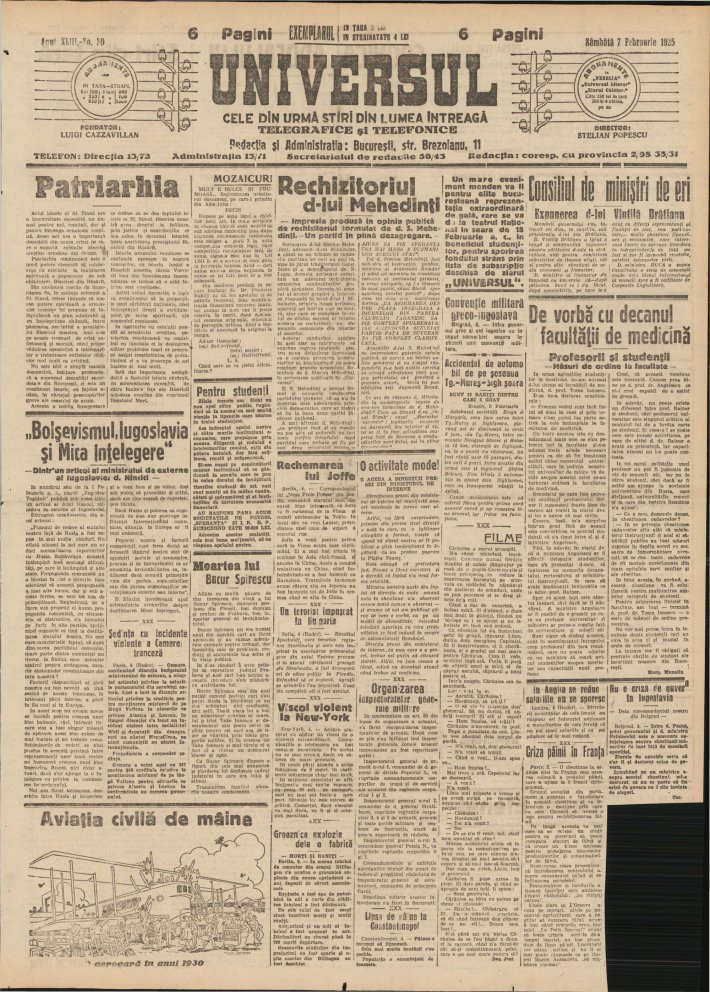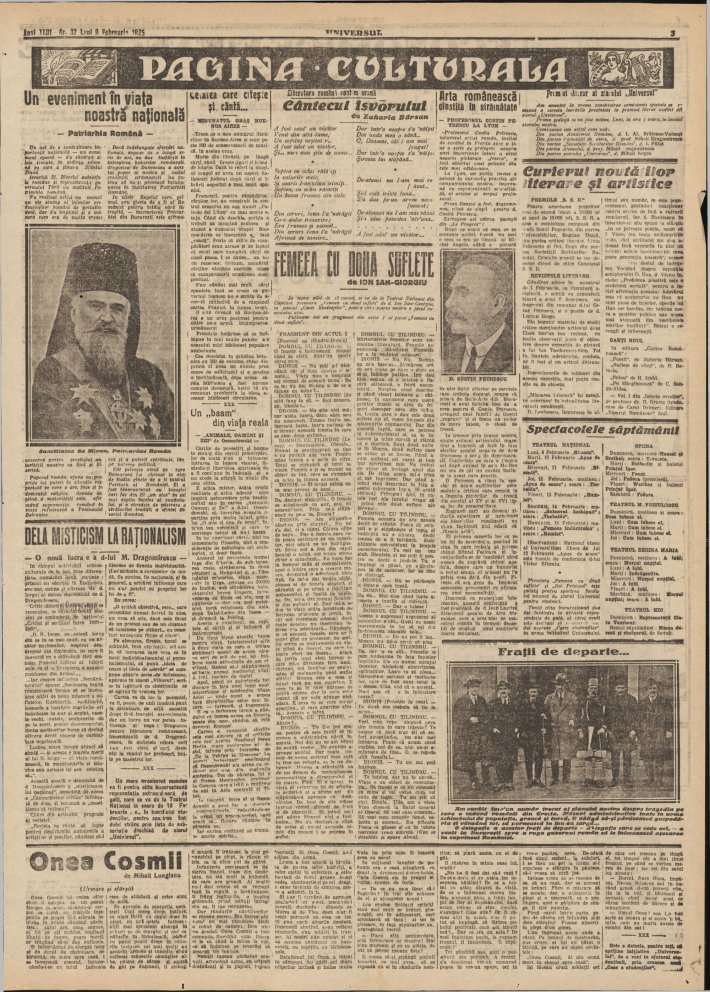 Tot „Universul” publică luni, 9 februarie 1925, textul cu titlul: „Un eveniment în viaţa noastră naţională - Patriarhia Română”. Editorialul arată că înfiinţarea Patriarhiei Române este „un act de o covârşitoare importanţă naţională - un eveniment epocal”, prin care „s-a realizat astfel nu numai un vis scump al inimilor credincioşilor români de pretutindeni, dar s-a împlinit şi o măsură care era de multă vreme necesară pentru prestigiul autorităţii noastre ca Stat şi Biserică”.