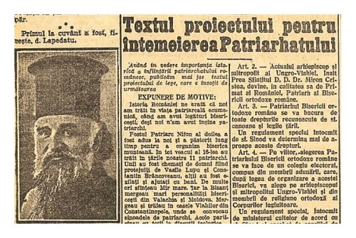 „De la 1821 datează epoca renașterii noastre naționale politice și bisericești. Atunci s‑au depărtat din țara noastră cu domnii fanarioți și clerul fanariot. Biserica noastră este Biserica Ortodoxă Română, pe care providența divină acum de curând a făcut‑o Biserica unui Regat liber și independent - Regatul României.