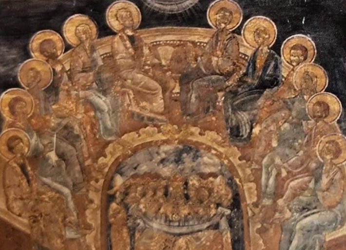 Reprezentarea scenei a evoluat, s-a rafinat, s-a îmbogățit în sensuri și semnificații: Apostolii sunt așezați în semicerc, locul din mijloc este gol, simbolizând prezența nevăzută a lui Hristos, iar peste toate - taina Pogorârii. Pentru privitorul de azi, scena are rolul de simbol vizual al întemeierii Bisericii.