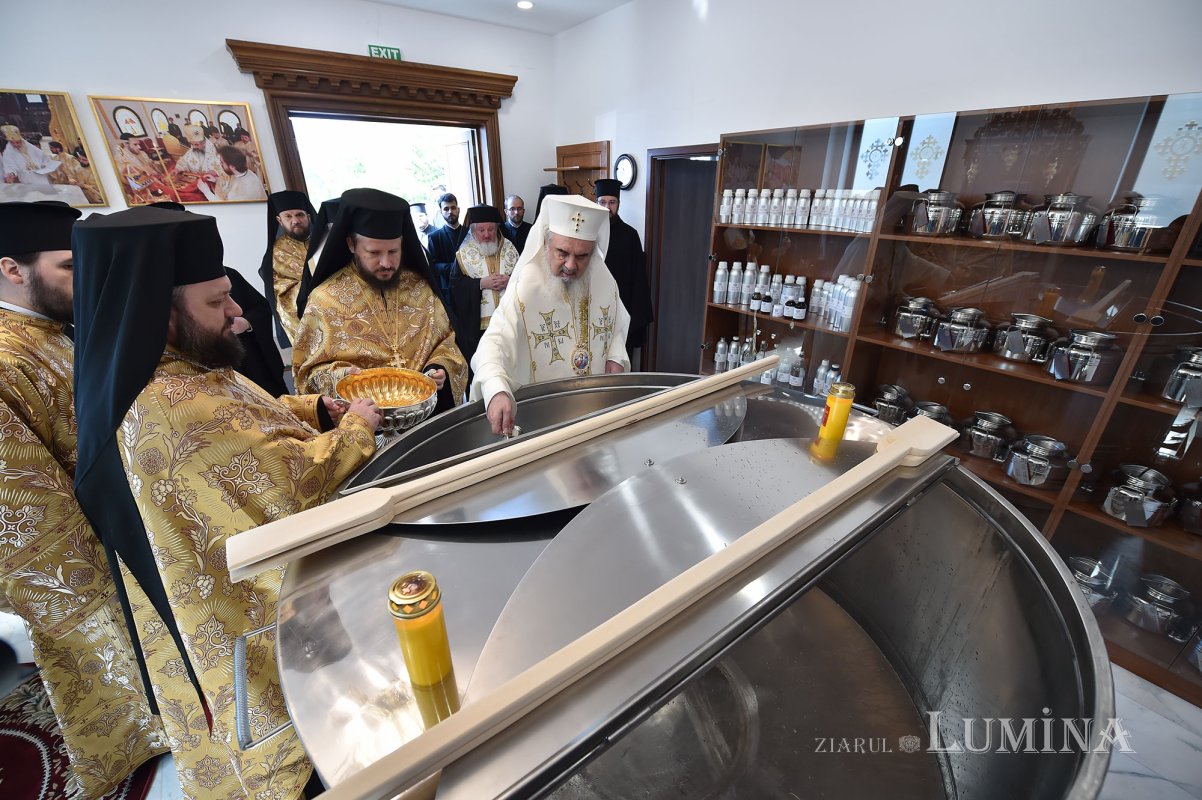 După slujba Aghesmei mici, Preafericitul Părinte Patriarh Daniel a sfințit spațiul destinat pregătirii Sfântului și Marelui Mir, denumit „Mirostirion”, materiile prime și vasele folosite la acest proces de preparare.
