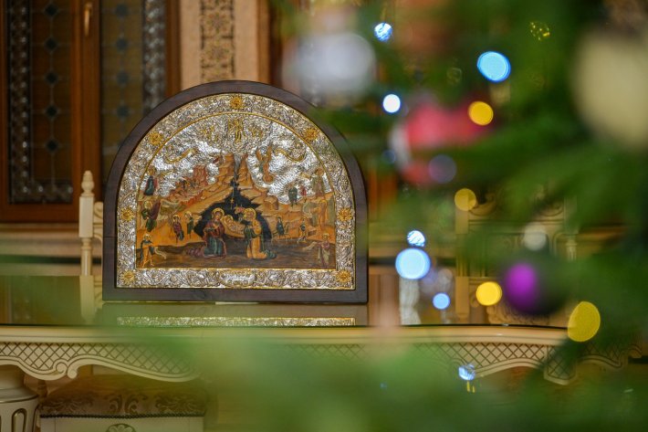 Soborul Catedralei Patriarhale din București a mers marți, 24 decembrie, în Ajunul Crăciunului, în procesiune cu icoana Nașterii Domnului la Reședința Patriarhală. Clericii și psalții lăcașului de rugăciune au fost întâmpinați de Preafericitul Părinte Daniel, Patriarhul Bisericii Ortodoxe Române, în Salonul Sfinților Români.