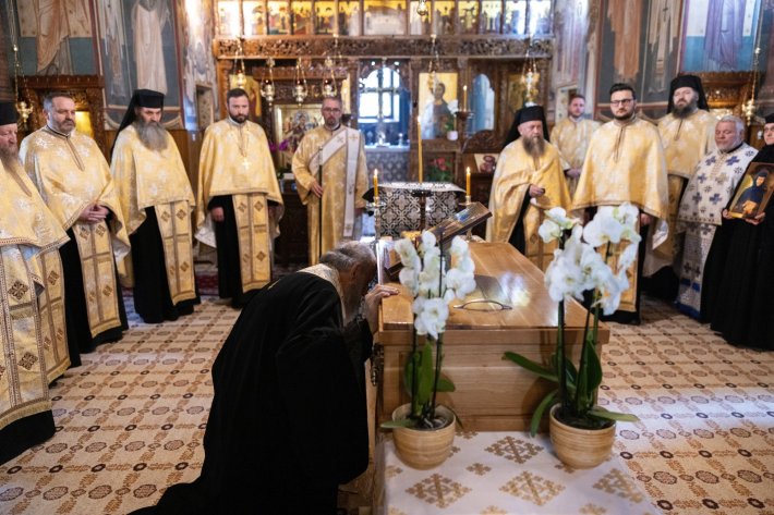 Apoi, în lăcașul de cult, a avut loc ultima parte a ceremoniei de deshumare. La final, Înaltpreasfințitul Părinte Arhiepiscop Irineu a rostit un cuvânt duhovnicesc în care a reliefat virtuțile luminoase ale Sfintei Cuvioase Filotimia de la Râmeț și importanța acestui eveniment. În continuare, clericii prezenți au venerat cu multă evlavie relicvele Sfintei Cuvioase Filotimia. În următoarea perioadă, cinstitele moaște ale venerabilei monahii de la Râmeț vor fi depuse temporar într-o încăpere specială din incinta așezământului monahal. Aici, se va desfășura procesul de pregătire adecvată care precede așezarea relicvelor în raclă, sub atenta supraveghere a conducerii Mănăstirii „Sfinții Apostoli Petru și Pavel” de la Râmeț și a delegaților Centrului eparhial din Alba Iulia.