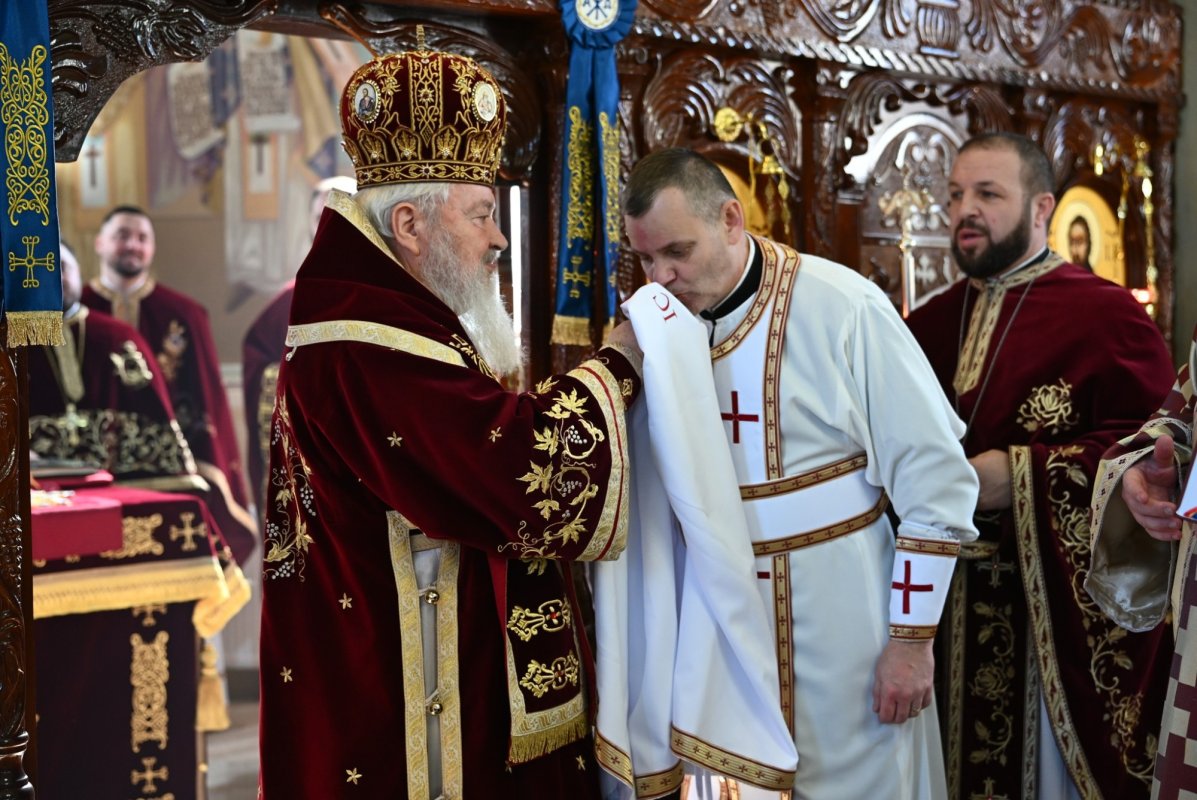 Răspunsurile liturgice au fost date de Grupul vocal „Theotokos”. La chinonic, interpretul de muzică populară Ioan Dordoi a interpretat mai multe pricesne. La finalul slujbei, preotul paroh Alexandru Ioan Circa i-a mulțumit ierarhului şi i-a oferit, din partea comunității parohiale, o icoană cu Răstignirea Domnului.