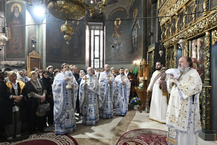După citirea pasajului evanghelic al sărbătorii (Luca 1, 24-38), ierarhul a rostit un cuvânt de învățătură în care a vorbit despre semnificația praznicului Bunei Vestiri și despre personalitatea Maicii Domnului. „Sărbătoarea Bunei Vestiri este prilej de bucurie nu doar nouă celor de acum, ci și celor care au așteptat îndelung venirea în lume a Fiului lui Dumnezeu, după făgăduința care a fost făcută protopărinților noștri demult în grădina Edenului, când au căzut în păcatul neascultării. Dacă privim istoria Vechiului Legământ vom înțelege această așteptare a venirii în lume a Celui care avea să ne răscumpere din robia acestui blestem. (…) La începutul Evangheliei Sfântului Apostol Luca ni se vorbește despre arătarea îngerului în vremea când Zaharia slujea înăuntrul templului. Se rugase multă vreme ca să aibă un prunc, era înaintat în zilele vieții lui, atât el, cât și femeia lui, Elisabeta. Un înger i-a spus că vor avea un prunc şi că îi vor pune numele Ioan, dar Zaharia a avut o umbră de neîncredere și, ne spune Evanghelia, a rămas mut. Evanghelia continuă, spunându-ne că atunci când femeia lui Zaharia se afla în luna a șasea de sarcină, a fost trimis Arhanghelul Gavriil la o fecioară care trăia în Nazaret, logodită cu un bărbat pe numele lui Iosif, iar numele fecioarei era Maria. Cine era această fecioară care locuia la Nazaret de puțin timp? Era fiica unor oameni la fel de rugători și la fel de apropiați de Dumnezeu cum sunt cei pomeniți mai înainte de acest moment al Bunei Vestiri, adică preotul Zaharia și Elisabeta, femeia lui. Părinții Mariei au primit și ei semn, la bătrânețe, că vor avea un prunc, iar Biserica îi pomeneşte «Drepții și dumnezeieștii Părinți Ioachim și Ana». (…) Maria a venit ca rod al rugăciunii, al așteptării, al tăcerii și al răbdării. La vârsta de 3 ani a fost dusă în templu și a rămas acolo vreme de aproximativ 12 ani. Când a ieșit din templu, lucrurile se schimbaseră: părinții ei, vârstnici, trecuseră din această viață și a fost încredințată unei rudenii, un om vârstnic care avea copii, care avea aceeași statură de om drept, de aceea și a fost numit «Dreptul Iosif». Și acesta a luat-o în casa lui ca pe o copilă, pentru că era o diferență prea mare între ei, iar Maria, după cum ne mărturisesc Părinții Bisericii, avea o curăție de care și îngerul s-a minunat. Sfântul Grigorie Palama, într-o scriere, ne spune că «îngerul, venind în preajma Fecioarei, s-a desfătat de curăția gândurilor ei». (…) Şi alți Părinți ai Bisericii vorbesc despre această desăvârșită dorință a Fecioarei de a-I sluji lui Dumnezeu. Întâlnirea cu îngerul, cuvintele pe care i le-a spus Fecioarei au tulburat-o pe aceasta, chiar dacă era smerită și încrezătoare în Domnul, după ce i s-a spus că Îl va naște pe Fiul lui Dumnezeu. Fecioara, surprinsă, a întrebat cum va fi aceasta, «pentru că eu nu știu de nuntă», iar atunci îngerul i-a spus: «Duhul Sfânt Se va pogorî peste tine și puterea Celui Preaînalt te va umbri. De aceea, Sfântul care Se va naște din tine, Fiul lui Dumnezeu Se va chema». Și Fecioara, smerită, crescută în tradiția ascultării față de Dumnezeu, a spus: «Fie mie după cuvântul tău», așa cum altădată Dumnezeu a spus: «Să fie lumină», creând din nimic lumea. Părinții Bisericii ne spun că atunci când Maica Domnului a rostit cuvântul «fie mie după cuvântul tău» s-a recreat lumea, după momentul de la începutul zidirilor când Dumnezeu a spus același cuvânt - «Să fie lumină» - și toate s-au făcut după cuvântul Lui. De la această sărbătoare ce învățăm noi? În primul rând, credința celor care au pregătit acest moment, amintiți toți în capitolul 1 al Evangheliei după Sfântul Luca: Zaharia și femeia lui, Elisabeta, Dreptul Iosif și ceilalți care au avut puterea să înțeleagă taina acestui moment. Învățăm apoi fiecare dintre noi smerenia pe care trebuie să o avem, pe care Părinții Bisericii au învățat-o în primul rând de la Maica Domnului. Smerenia este singura care înalță, care aduce lumină în întunericul ce poate fi întâlnit pretutindeni”.