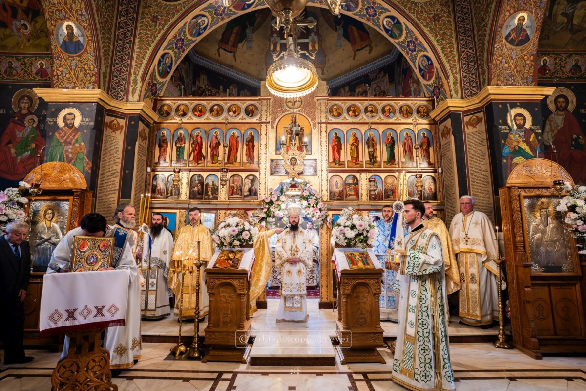 Preasfinția Sa a liturghisit înconjurat de un numeros sobor de preoți și diaconi, din care au făcut parte pr. Dimitrie Horga, consilier administrativ al Arhiepiscopiei Sucevei și Rădăuților; pr. Ștefan Mihalcea, consilier eparhial al Sectorului media și comunicare; pr. Adrian Popa, consilier al Sectorului colportaj bisericesc, și pr. Minu Mititelu, protoiereu al Protopopiatului Suceava II.