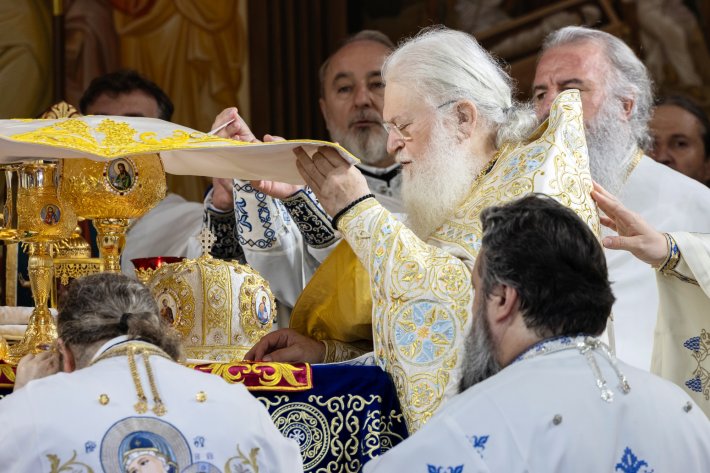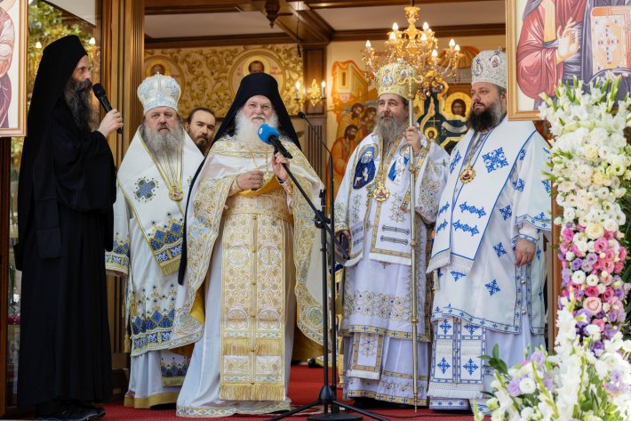 Din soborul care a slujit împreună cu ierarhii la Altarul de vară al Paraclisului Catedralei Mântuirii din București au făcut parte părintele arhimandrit Efrem, starețul Mănăstirii Vatoped din Sfântul Munte Athos, și clerici vatopedini, slujitori de la mănăstirea nemțeană Sihăstria, în frunte cu părintele arhimandrit Arsenie Popa, starețul așezământului monahal; părintele arhimandrit Ciprian Grădinaru, eclesiarhul Paraclisului Catedralei Naționale; părintele arhimandrit Dionisie Constantin, consilier patriarhal; părintele arhimandrit Ioachim Ceaușu, starețul Mănăstirii „Duminica Sfinților Români” din București; părintele protosinghel Andrei Nichifor, consilier patriarhal; părintele Ioan Dragomir, consilier patriarhal; părintele Costin Spiridon, consilier patriarhal; părintele Marian Codruț, inspector eparhial; arhid. Nicolae Iftimiu, consilier patriarhal; arhid. Andrei Duță și diaconii Adrian Butuc, Alexandru Copceag, Cristian Copceag și Andrian Pană.