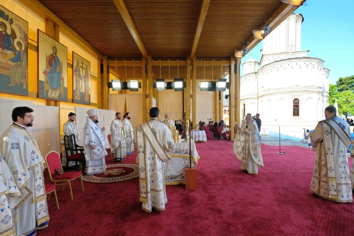 La Altarul de vară al Catedralei Patriarhale, Sfânta Liturghie a fost săvârșită de Preasfințitul Părinte Paisie Sinaitul, înconjurat de un sobor de preoți și diaconi, slujitori ai sfântului lăcaș de pe Colina Bucuriei.