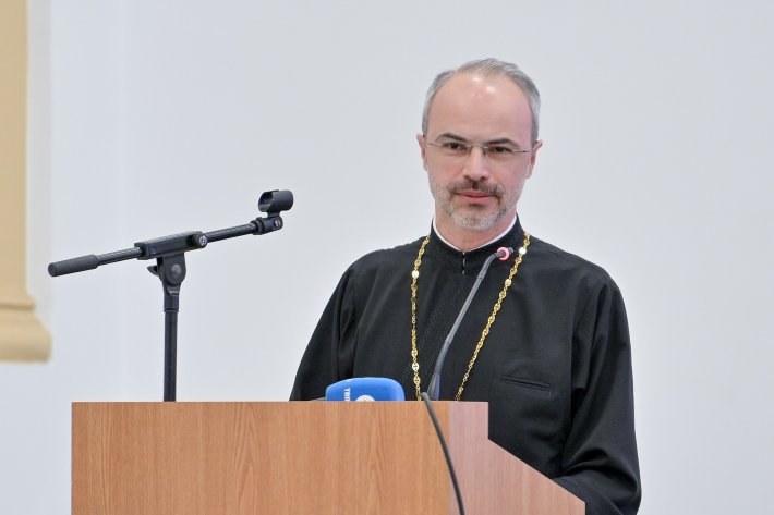 În continuare, a luat cuvântul părintele Ștefan Sfarghie, care a susținut referatul intitulat „Politicul și spiritualul în paginile Ziarului Lumina. Analiză”: „Doresc să realizez o analiză a modului în care primul cotidian creştin din România și din întreaga lume ortodoxă se raportează, pe de o parte, la viaţa bisericească şi socială din ţara noastră, iar pe de altă parte, la viaţa politică din România. Este bine cunoscut faptul că Biserica nu face şi nu se implică în politică, nici de la amvon şi nici prin mijloacele de comunicare în masă. Ca mădulare ale Bisericii, jurnaliştii bisericești sunt cetăţeni ai statului, dar şi ai Împărăţiei lui Dumnezeu. Însă Împărăţia lui Dumnezeu «nu este din lumea aceasta» (Ioan 18, 36). De aceea, și poziția jurnaliștilor care fac parte din Centrul de Presă BASILICA al Patriarhiei Române față de viața politică se încadrează în general în răspunsul oferit de Mântuitorul Iisus Hristos irodianilor şi fariseilor care L-au întrebat dacă se cuvine să plătească impozit cezarului. (...) Astăzi, în paginile Ziarului Lumina, oficiosul Patriarhiei Române, există ocazional știri din viața politică, însă acestea sunt abordate din perspectiva învățăturii Bisericii Ortodoxe și a valorilor creștine. Acestea nu sunt destinate să susțină un anumit partid sau candidat, ci mai degrabă reflectă pozițiile oficiale ale Bisericii cu privire la evenimentele politice și sociale, subliniind principiile morale, etice și sociale pe care Biserica le consideră importante. De exemplu, în contextul alegerilor sau al unor evenimente politice semnificative, Ziarul Lumina poate publica editoriale sau comentarii despre importanța implicării civice a creștinilor, despre rolul Bisericii în educația cetățenilor sau despre necesitatea unui comportament moral în viața publică. Biserica se roagă la fiecare slujbă pentru ca ţara, oraşele şi satele să aibă conducători care să fie responsabili și să lucreze în interesul binelui comun, respectând principiile creștine ale iubirii și dreptății. Astfel, «știrile politice» din Ziarul Lumina nu sunt destinate a face politică în mod direct, ci sunt mai degrabă un mijloc de a reflecta poziția Bisericii Ortodoxe Române în fața realităților politice, oferind cititorilor ghidaj moral și spiritual”.