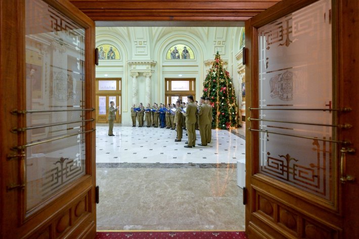 Praznicul Nașterii Mântuitorului Iisus Hristos a fost vestit și de corul militar al Academiei Forțelor Terestre „Nicolae Bălcescu” din Sibiu în Sala „Europa Christiana” a Palatului Patriarhiei din București, miercuri, 17 decembrie. Vocile răsunătoare ale viitorilor ofițeri care au interpretat colinde tradiționale au umplut sala, la recital asistând Preasfințitul Părinte Paisie Sinaitul, Episcop-vicar patriarhal, împreună cu părintele Ciprian Ion Ioniță, consilier patriarhal, și alți clerici.