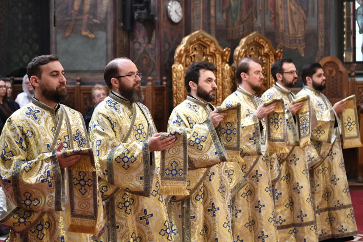 Răspunsurile la strană au fost oferite de membri ai Grupului psaltic „Tronos” al Catedralei Patriarhale.