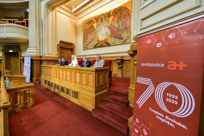 Aula Magna „Teoctist Patriarhul” a Palatului Patriarhiei din București a găzduit joi, 5 iunie 2025, Conferința „Tradiție și continuitate românească: 100 de ani Patriarhia Română, 70 de ani Antibiotice Iași”. La evenimentul care a marcat deopotrivă aniversarea Centenarului Patriarhiei Române și cea a șapte decenii de activitate a companiei farmaceutice de renume mondial a fost prezent și Preafericitul Părinte Daniel, Patriarhul Bisericii Ortodoxe Române, care a rostit cuvântul de deschidere și a oferit distincții reprezentanților societății.
