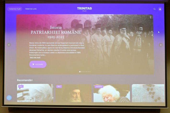 În încheiere, arhid. Gheorghe Cristian Popa, consilier patriarhal și directorul TRINITAS TV, a lansat platforma de streaming TRINITAS Film: „Am onoarea și bucuria ca, în acest an dedicat Centenarului Patriarhiei Române și în această zi de sărbătoare, să prezint TRINITAS Film, noua platformă de streaming a televiziunii TRINITAS TV. Este un moment deosebit de important pentru echipa televiziunii deoarece lansăm, cu acest prilej, singura platformă de streaming cu conținut creștin-ortodox din România, și după documentarea noastră, și singura din lume. TRINITAS Film este o platformă digitală de tip video la cerere («video on demand») disponibilă prin intermediul site-ului trinitas.film și prin aplicații digitale dedicate dispozitivelor mobile cu sisteme de operare Android și iOS, precum și pentru televizoarele inteligente. Este în mod asumat o platformă dedicată în principal filmului documentar, filmului de autor și producției audiovizuale cu valoare culturală și spirituală. Arhiva de filme realizate de TRINITAS TV în ultimii 10 ani a depășit 150 de producții în format high-definition, acestea constituind un tezaur vizual și cultural prețios care merita valorificat, adus într-un spațiu corespunzător și organizat într-un mod tematic și ușor accesibil. În ceea ce privește structura generală a platformei, pentru moment ea este împărțită în două mari cataloage: catalogul TRINITAS Film prezintă filmele documentare religioase, culturale, sociale și istorice, organizate pe categorii. (...) Al doilea catalog al platformei, numit TRINITAS Live, oferă acces la fluxul în direct al televiziunii TRINITAS TV. Aici găsim și grila de programe, organizată pe zile și pe ore. (...) În ceea ce privește accesul și modelul de utilizare, platforma funcționează pe un model mixt, în sensul că o parte din conținut, în acest moment peste jumătate din el, este accesibil în mod gratuit, doar prin crearea unui cont de utilizator. Accesul complet se face pe bază de abonament la un cost accesibil de 2 euro pe lună. Acest model permite susținerea producției de filme documentare, de conținut nou, dezvoltarea continuă a platformei, și este un pas integrat în planul de sustenabilitate al TRINITAS TV. Aș dori să adresez mulțumiri Preafericitului Părinte Patriarh Daniel pentru faptul că a aprobat și a binecuvântat ca acest proiect să fie implementat”.