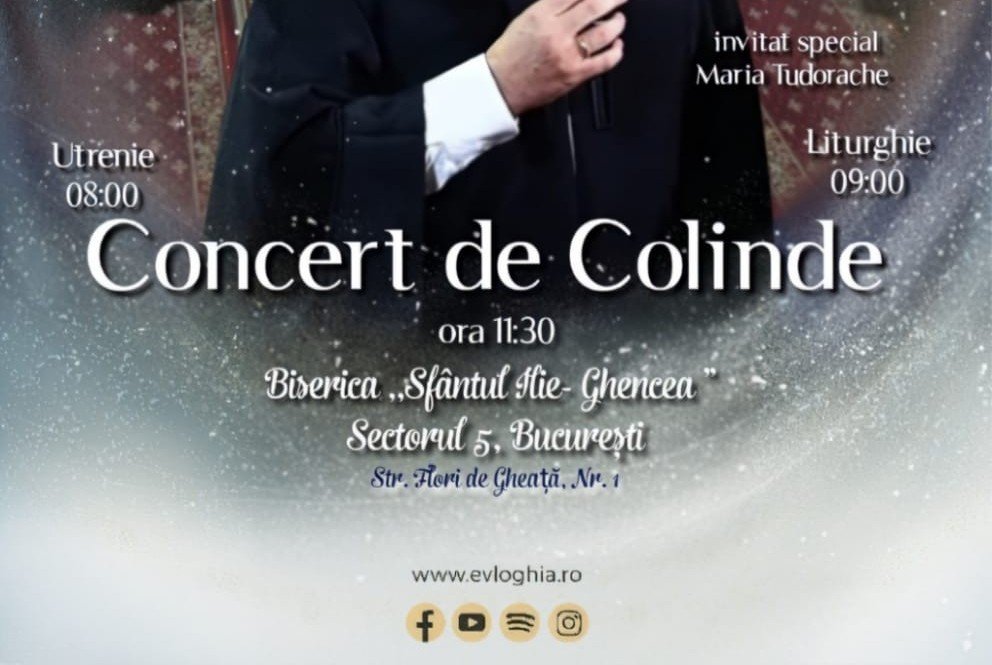 În atmosfera de bucurie duhovnicească a sărbătorilor de iarnă, Grupul psaltic „Evloghia” invită credincioșii bucureșteni la un concert de colinde, ce va avea loc duminică, 21 decembrie 2025, la Biserica „Sfântul Ilie”‑Ghencea din sectorul 5 al Capitalei.