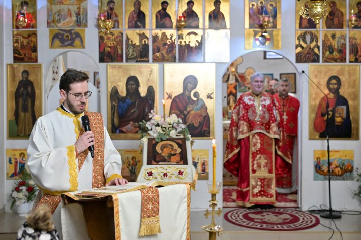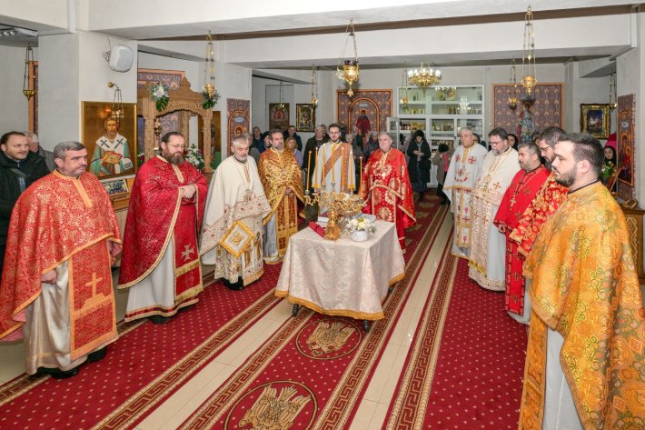 Credincioși din București s-au reunit astăzi, 17 februarie, în rugăciune, la hramul paraclisului situat la demisolul noii biserici a Parohiei Bărbătescu Vechi, „Sfântul Mare Mucenic Teodor Tiron”. Bucuria sărbătorii a fost încununată de sfințirea noii racle ce adăpostește un fragment din moaștele Sfântului Apostol Andrei cel întâi chemat, Ocrotitorul României.