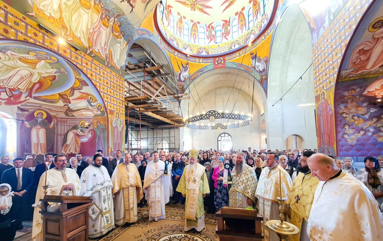 La chinonic, un grup de credincioase din Parohia Salva, județul Bistrița-Năsăud, a interpretat pricesne. Părintele stareț Chiril Zăgrean a mulțumit ierarhului și tuturor celor care ajută la construirea așezământului.