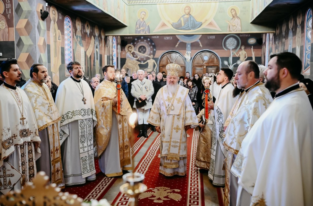 În biserica parohială, Părintele Mitropolit Andrei a săvârşit Sfânta Liturghie şi a rostit un cuvânt de învățătură, pornind de la versetele scripturistice: „Acum, liberează pe robul Tău, Stăpâne, după cuvântul Tău, în pace; că au văzut ochii mei mântuirea Ta, pe care ai pregătit-o înaintea feţei tuturor popoarelor; lumină spre descoperirea neamurilor şi slavă poporului Tău Israel” (Luca 2, 29-32). Ierarhul le-a vorbit credincioșilor prezenți despre efemeritatea vieții și despre faptul că ar trebui să tânjim după dorul de a ne întâlni cu Dumnezeu în veșnicie, asemenea Sfântului și Dreptului Simeon.