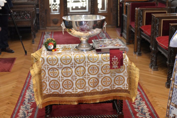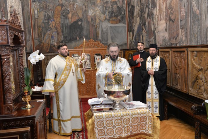 În continuare, a fost săvârșită slujba de sfințire mică a apei, conform rânduielii liturgice specifice acestei zile.