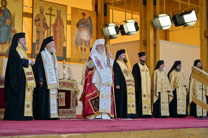 Cele două coloane ale procesiunii s-au reunit la Crucea brâncovenească de la baza Dealului Patriarhiei. În sunetul clopotelor și al sfintelor cântări, întregul alai procesional a urcat Colina Bucuriei, fiind primit la Altarul de vară al Catedralei Patriarhale de către Preafericitul Părinte Daniel, Patriarhul Bisericii Ortodoxe Române, împreună cu Înaltpreasfințitul Părinte Nifon, Arhiepiscopul Târgoviștei, Mitropolit onorific și Exarh patriarhal.