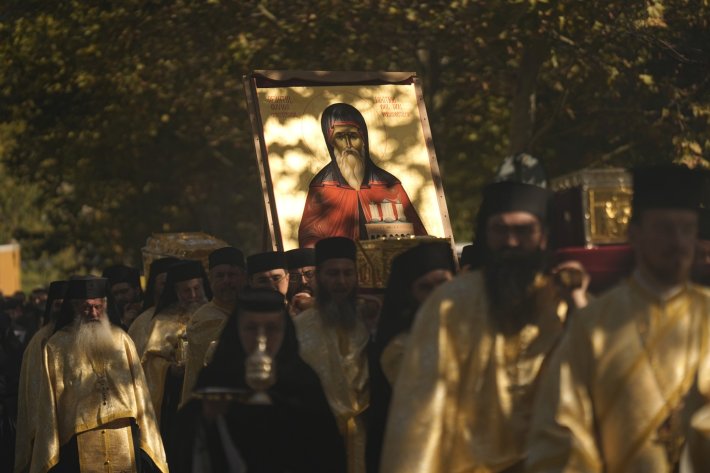 La întâmpinarea moaștelor a fost prezentă și o delegație a Schitului românesc Prodromu din Sfântul Munte Athos, condusă de părintele arhimandrit Atanasie Prodromitul, starețul schitului.