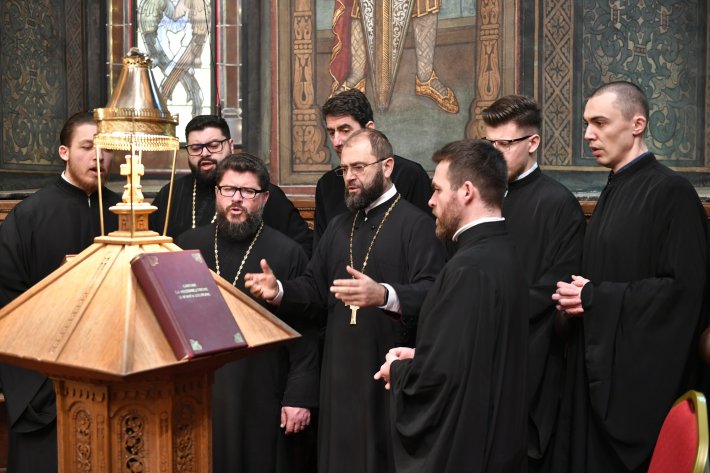 Cu acest prilej, Grupul psaltic „Tronos” al Catedralei Patriarhale a interpretat imnul compus special pentru acest moment, Preafericitul Părinte Patriarh Daniel dând citire la final mesajului intitulat „Patriarhia Română - 100 de ani de slujire a Bisericii și a unității poporului român”.