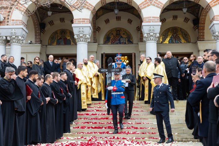 Fostul internațional român Mircea Lucescu, care a trecut la cele veșnice în noaptea de marți, 7 aprilie, la vârsta de 80 de ani, a fost condus pe ultimul drum astăzi, 10 aprilie. Slujba Înmormântării a fost oficiată în Biserica „Sfântul Elefterie”‑Nou, Paraclis Patriarhal, din București, de către Preasfințitul Părinte Timotei Prahoveanul, Episcop‑vicar al Arhiepiscopiei Bucureștilor, delegatul Preafericitului Părinte Daniel, Patriarhul Bisericii Ortodoxe Române, împreună cu un sobor numeros de preoți și diaconi. La ceremonie au participat oficialități, conducători de cluburi, antrenori și numeroși foști jucători ai acestuia, care i‑au adus un ultim omagiu.