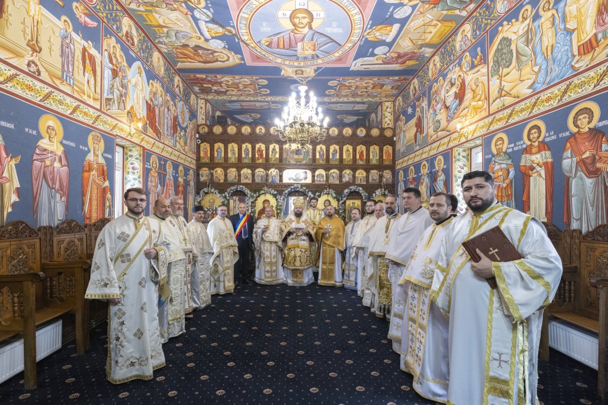 În continuare, ierarhul a oficiat Sfânta Liturghie, iar după citirea pasajului biblic din Evanghelia după Sfântul Apostol și Evanghelist Luca (6, 31-36), ierarhul le-a vorbit credincioșilor veniți la sărbătoarea parohiei despre valorile propovăduite de Mântuitorul Iisus Hristos: „Spune Mântuitorul Hristos: «Precum voiți să vă facă vouă oamenii, faceți-le și voi asemenea». Este vorba despre virtutea omeniei, a bunătății minimale, de a face bine celui de la care pretindem sau așteptăm același bine. Evanghelia, însă, nu se limitează la modul acesta negativ de prezentare, să ne arate adică doar ceea ce nu trebuie să facem, ci ne invită la o atitudine pozitivă de acțiune, de inițiativă, săvârșind noi mai întâi binele, adică, ceea ce am dori să primim de la cei din jurul nostru. O altă valoare, pe care o «minimalizează», o micșorează Evanghelia de astăzi este «iubirea celor dragi». Prin cuvintele: «Dacă iubiți pe cei ce vă iubesc pe voi, ce răsplată puteți avea? Că și păcătoșii iubesc pe cei ce îi iubesc pe ei», se arată că o astfel de iubire este cât se poate de simplă, de nesatisfăcătoare. Nu este, adică, o mare ispravă să-i iubești pe cei ce te iubesc! Nu este o mare virtute să-ți iubești părinții, ori copiii, să-ţi iubești soția, soțul, ori prietenii. Să-i iubești pe cei ce te iubesc pe tine este totdeauna ușor. O fac, de altfel, și păcătoșii! Altă virtute pe care Evanghelia de astăzi o reduce ca importanță este «onestitatea» sau «corectitudinea». Prin cuvintele: «Dacă faceți bine celor care vă fac vouă bine, ce mulțumire puteți avea? Că și păcătoșii fac același lucru?», se arată, deci, că această corectitudine, a răsplătirii binelui cu bine, o au până și păcătoșii între ei. Iar a patra virtute minimalizată, subestimată, este «dreptatea», pentru că zice: «Dacă dați împrumut celor de la care nădăjduiți să luați înapoi, ce mulțumire puteți avea? Că și păcătoșii dau cu împrumut păcătoșilor, ca să primească înapoi întocmai». După ce ni se arată că toate aceste fapte sunt departe de a fi mari virtuți, prin care ne-am putea considera buni, sau îndreptățiți înaintea lui Dumnezeu, cuvintele lui Hristos din Evanghelie vin și ne surprind și mai mult: «Iubiți pe vrăjmașii voștri, faceți bine și dați cu împrumut fără să nădăjduiți nimic în schimb, iar răsplata voastră va fi multă și veți fi fiii Celui Preaînalt». Sunt, așadar, «normalizate», depreciate, scăzute în importanță, virtuți în care fiecare din cei de atunci, dar și noi, cei de azi, ne regăsim cu ușurință. În schimb, ni se arată că adevărata virtute este greu de împlinit!”, a spus ierarhul.