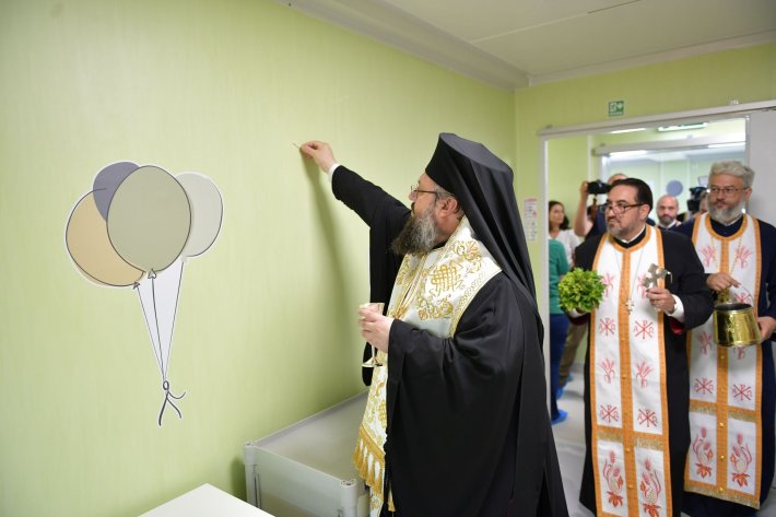 Preasfințitul Părinte Paisie Sinaitul, Episcop-vicar patriarhal, a săvârșit miercuri, 16 iulie, slujba de binecuvântare a lucrărilor de amenajare a noii Secții de Oncohematologie Pediatrică a Institutului Clinic Fundeni din București. La final, ierarhul a oferit așezământului medical și participanților la slujbă daruri din partea Preafericitului Părinte Daniel, Patriarhul Bisericii Ortodoxe Române.