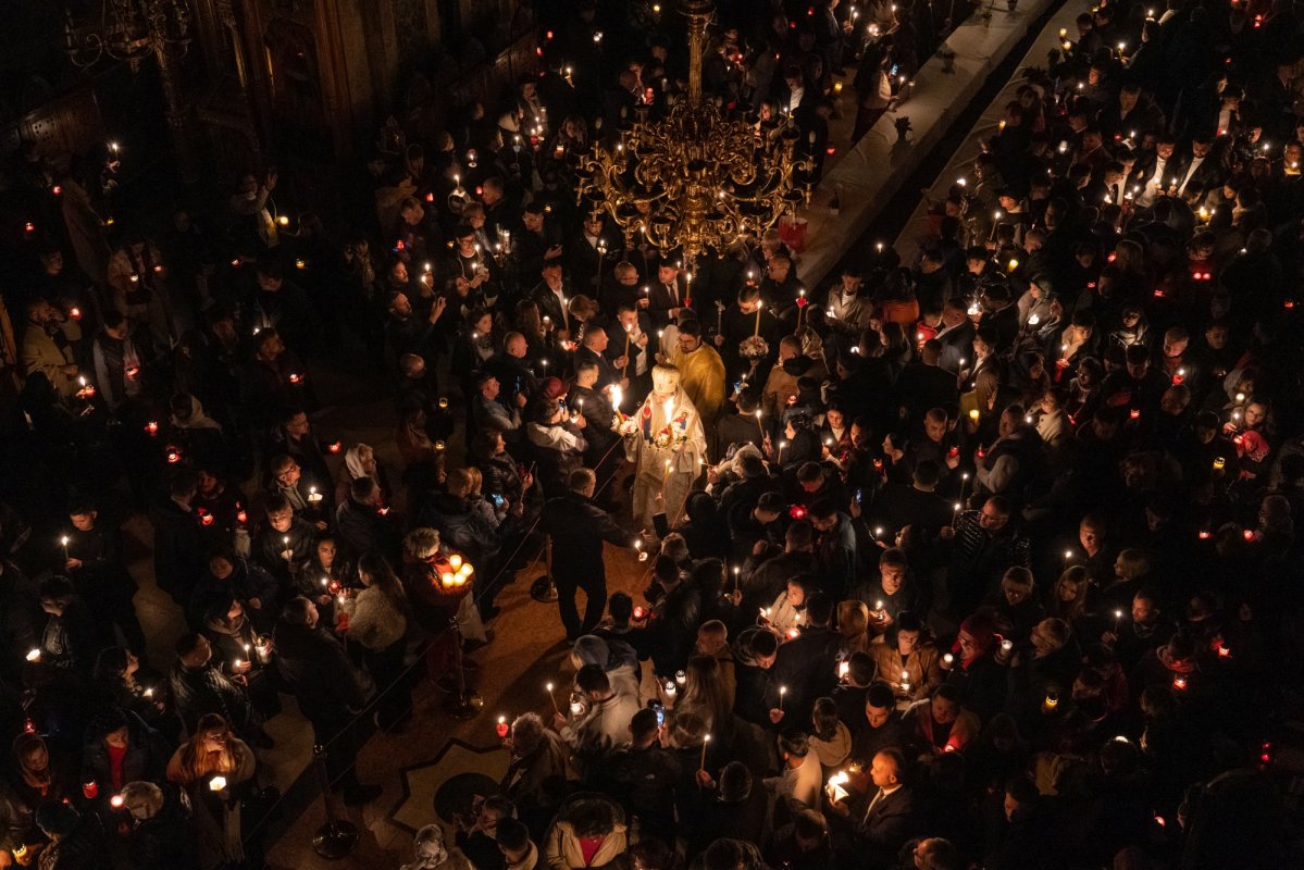 În noaptea Învierii, mulțimi de credincioși au primit Sfânta Lumină adusă de la Ierusalim la Catedrala Mitropolitană „Sfânta Treime” din Sibiu şi au participat la slujba de Înviere, Utrenia şi Sfânta Lit