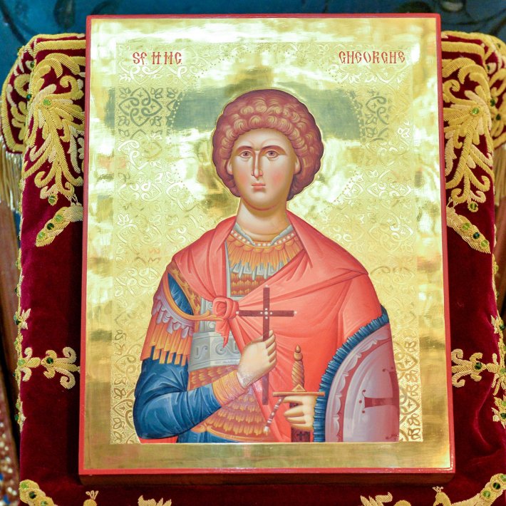 În cuvântul său de învățătură, Preafericitul Părinte Patriarh Daniel a evocat virtuțile deosebite și curajul mărturisitor al Sfântului Mucenic Gheorghe: „Tânărul Gheorghe avea multe virtuți morale deosebite pe care i le‑au inspirat mama sa și credința lui în Hristos. A ales cariera militară și a ajuns să fie repede apreciat, încât a devenit ofițer în garda împăratului roman Dioclețian, atât pentru virtuțile sale militare, dar și pentru comportamentul său uman. În anul 303, împăratul Dioclețian, sfătuit mai ales de ajutorul de împărat sau cezar, ginerele său Maximian Galeriu, a început persecuția împotriva creștinilor [...]. Sfântul Gheorghe, fiind ofițer superior în armata romană și ofițer în garda personală a împăratului Dioclețian, în momentul în care împăratul a hotărât cele patru persecuții, de față cu toți cei prezenți a spus împăratului că el este creștin și că vrea să rămână creștin și poate sluji împăratului doar ca ostaș al lui Hristos. Împăratul Dioclețian a rămas uimit de această îndrăzneală. Mai întâi, a încercat printr‑un intermediar să‑l convingă pe ofițerul Gheorghe să renunțe la credința creștină, dar Sfântul Gheorghe nu a acceptat și L‑a mărturisit în continuare pe Hristos. Apoi împăratul a dat ordin ca el să fie întemnițat și supus multor chinuri: loviri cu sulițe, bătaie la tălpi, lespezi de piatră pe piept, legat de o roată cu dinți de fier, aruncat într‑o groapă cu var nestins, încălțăminte cu cuie de fier, băutură otrăvită, bătaie cu vine de bou și altele. Văzând însă chinurile și puterea de răbdare a sa, mulți ostași, care au înțeles că o putere deosebită se află în persoana Sfântului Gheorghe, s‑au lepădat de zeii sau idolii păgâni și au devenit și ei creștini, precum și soția împăratului Dioclețian, împărăteasa Alexandra, a devenit creștină. Împăratul Dioclețian s‑a mâniat și a dat ordin ca Gheorghe să fie decapitat și, de asemenea, să fie decapitată și împărăteasa Alexandra. Astfel, în ziua de 23 aprilie 303, Sfântul Gheorghe a primit moarte de martir prin tăierea capului, iar împărăteasa Alexandra și‑a dat sufletul înainte de a fi decapitată”.