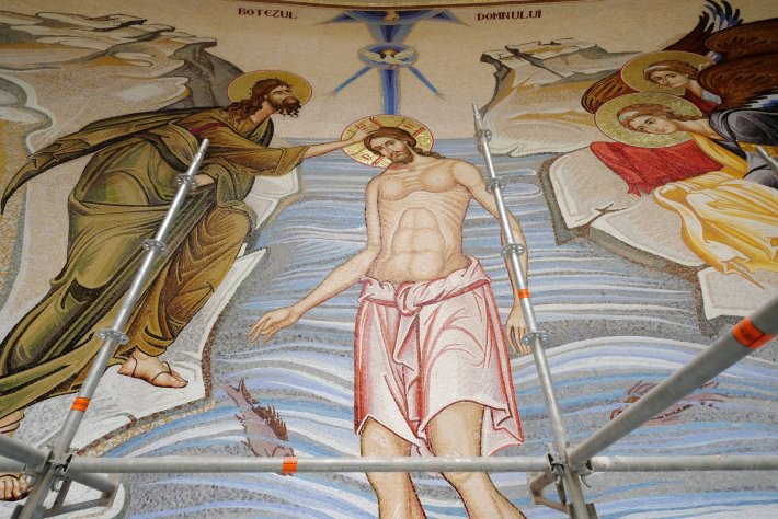 Despre stadiul lucrărilor de pictură, a oferit detalii Daniel Codrescu, coordonatorul echipei de pictori care lucrează la aplicarea mozaicului în interiorul Catedralei Mântuirii Neamului.