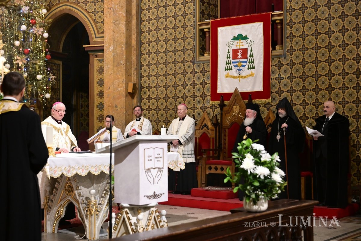 Înainte de debutul serviciului religios, Înaltpreasfinţitul Părinte Aurel Percă, Arhiepiscop și Mitropolit al Arhidiecezei Romano-Catolice de București, a rostit un cuvânt de început: „Vă adresez un călduros bun-venit în bucuria și responsabilitatea acestui timp de har, Săptămâna de rugăciune pentru unitatea creștinilor. Ne adunăm astăzi nu ca simpli invitați, ci ca frați și surori chemați la rugăciune pentru ca, așa cum ne îndeamnă Apostolul, să fim un singur trup și un singur suflet, așa cum am fost chemați la o singură speranță. Unitatea nu este rodul efortului nostru exclusiv, ci dar al Duhului Sfânt, chemat să fie primit, cultivat și mărturisit”.