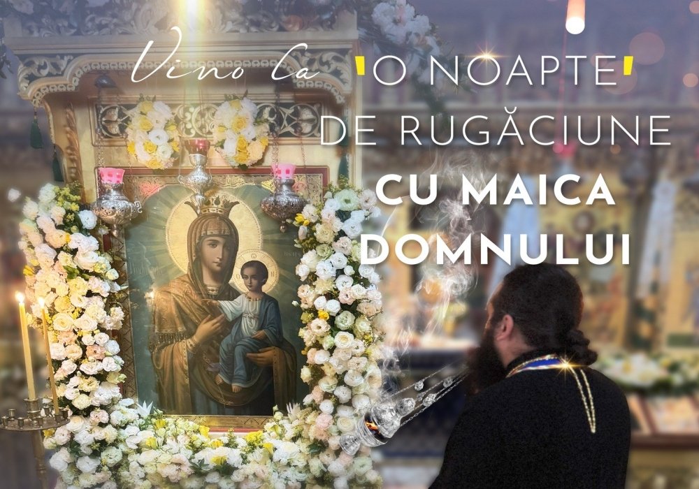 „Va fi o seară și o noapte de rugăciune prin care să se curețe și să se vindece toate nopțile care s-au petrecut fără rugăciune și poate în dezordine. Vă chemăm să veniți cu metanierul, pentru a rosti împreună rugăciunea inimii, să ascultați slujba, să vă împărtășiți de binecuvântarea lui Dumnezeu prin Taina Sfântului Maslu și să plecați acasă cu conștiința vie că avem în cer o inimă de mamă care se roagă pentru noi și ne ocrotește la fiecare pas și în fiecare clipă”, a spus părintele protos. Arsenie Irimiea, după cum transmite Basilica.ro.