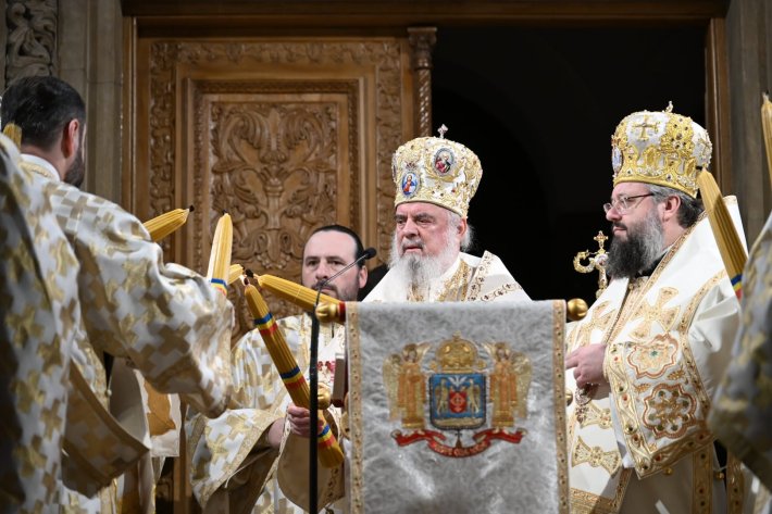 Preafericitul Părinte Daniel, Patriarhul Bisericii Ortodoxe Române, împreună cu Preasfințitul Părinte Varlaam Ploieșteanul, Episcop‑vicar patriarhal, Preasfințitul Părinte Paisie Sinaitul, Episcop‑vicar patriarhal, și Preasfințitul Părinte Timotei Prahoveanul, Episcop‑vicar al Arhiepiscopiei Bucureștilor, înconjurați de un sobor de clerici, au săvârșit rânduiala liturgică specifică Slăvitului Praznic al Învierii Domnului. La miezul nopții, în pridvorul Reședinței Patriarhale, a fost oficiată rânduiala Proclamării Învierii Domnului, la finalul căreia Întâistătătorul Bisericii noastre a rostit un cuvânt de învățătură.