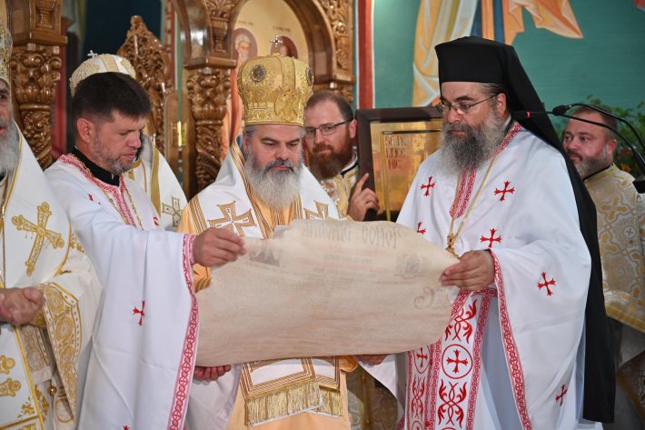După otpustul Sfintei Liturghii, Preasfințitul Părinte Veniamin, Episcopul Basarabiei de Sud, a dat citire Tomosului de canonizare a Sfântului Cuvios Iraclie, iar Preasfințitul Părinte Ignatie, Episcopul Hușilor, a dat glas Tomosului de canonizare a Sfântului Preot Mucenic Alexandru. Acestui moment solemn i-au urmat prezentarea și cinstirea icoanelor celor doi sfinți. În continuare, cu binecuvântarea PF Părinte Patriarh Daniel, PS Părinte Episcop Veniamin a oferit în dar Înaltpreasfințitului Părinte Mitropolit Petru un fragment din moaștele Sfântului Cuvios Iraclie, pentru a rămâne spre închinare la Chișinău.