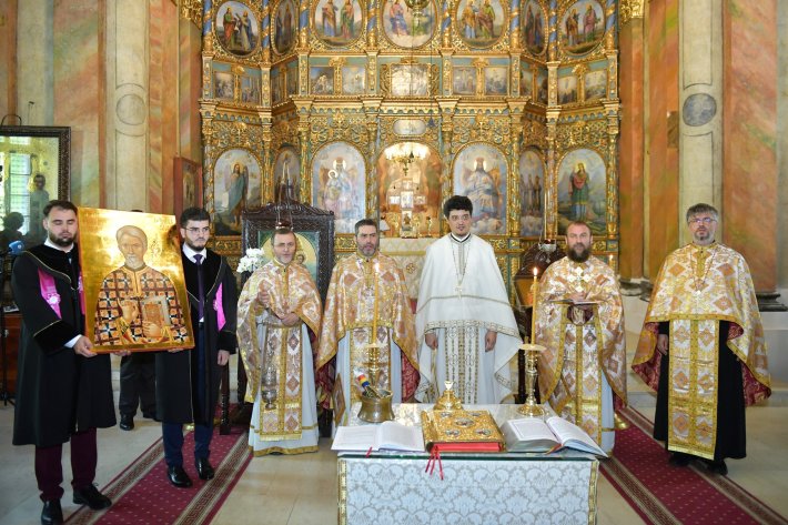 Ziua festivă a început cu săvârșirea Sfintei Liturghii la Paraclisul universitar „Sfânta Ecaterina” de către un sobor de preoți și diaconi, cadre didactice ale facultății: părintele lect. univ. dr. Cosmin Pricop; părintele conf. univ. dr. Marian Vild; părintele lect. univ. dr. Mihai Burlacu; părintele lect. univ. dr. Georgian Păunoiu; părintele lect. univ. dr. Alexandru Atanase Barna și arhid. lect. univ. dr. Eugen Maftei, consilier eparhial. La sfârșit, a fost săvârșită o slujbă de Te Deum. De asemenea, soborul a sfințit o icoană cu chipul Sfântului Preot Mărturisitor Dumitru Stăniloae, acesta fiind darul absolvenților promoției 2025, care va fi așezată spre închinare în amfiteatrul facultății dedicat Părintelui Dumitru Stăniloae.