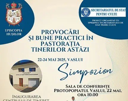 În perioada 22-24 mai 2025, Episcopia Hușilor, prin Sectorul activități cu tineretul, cu sprijinul Secretariatului de Stat pentru Culte, desfășoară proiectul „Provocări și bune practici în pastorația tinerilor astăzi”.