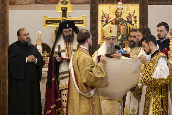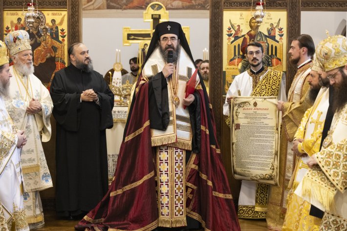 În chip providenţial, în Anul omagial al Centenarului Patriarhiei Române s-au adus la îndeplinire hotărârile recente ale Sfântului Sinod al Bisericii Ortodoxe Române de înfiinţare a noii eparhii din Marea Britanie, de ridicare la rangul de Arhiepiscopie şi de validare a alegerii Preasfinţitului Părinte Atanasie în demnitatea de Arhiepiscop al Arhiepiscopiei Ortodoxe Române a Marii Britanii şi Irlandei de Nord. Împuternicirea canonică de păstorire ca chiriarh i-a fost adusă ierarhului prin semnarea gramatei mitropolitane adresate de Înaltpreasfinţitul Părinte Mitropolit Iosif pleromei din Arhiepiscopia Ortodoxă Română a Marii Britanii şi Irlandei de Nord.