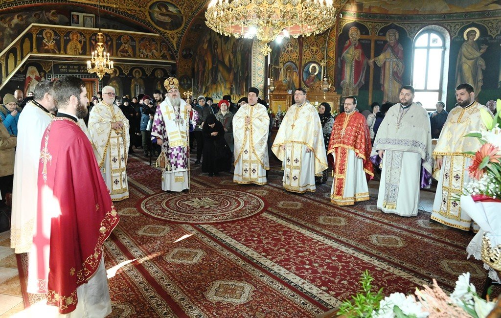 În cadrul Sfintei Liturghii săvârșite în ziua hramului bisericii, chiriarhul locului a rostit un cuvânt de învățătură în care a vorbit despre viața sfântului prăznuit, care reprezintă un model de stăruință în credința ortodoxă și de iubire față de Dumnezeu. Totodată, ierarhul a vorbit despre dimensiunea sacramentală a martiriului ce reprezintă mărturisirea credinței în viața Bisericii. Credincioșii prezenți au avut posibilitatea să se închine la părticele din moaștele Sfântului Haralambie, ale Sfântului Ierarh Nectarie, ale Sfântului Sfințit Mucenic Ciprian și ale Sfântului Mucenic Sebastian, păstrate în tezaurul sacru al bisericii.