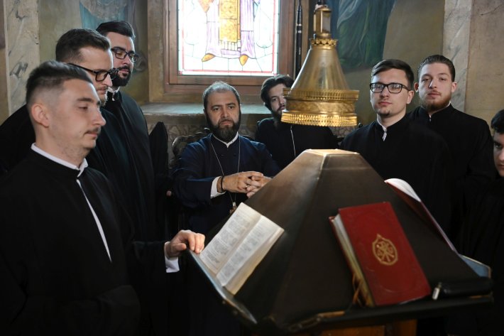 Din soborul de slujitori care s-au rugat împreună cu Episcopul-vicar patriarhal au făcut parte părintele arhimandrit Vasile Pîrjol, starețul Mănăstirii Cernica; părintele arhimandrit Ioachim Ceaușu, starețul Mănăstirii „Duminica Sfinților Români” din București; părintele protosinghel Adrian Rogoz, slujitor la Catedrala Patriarhală; arhidiaconul Nicolae Iftimiu, consilier patriarhal, directorul Agenției de știri BASILICA a Patriarhiei Române; arhidiaconul Dumitru Ojog, precum și alți slujitori.