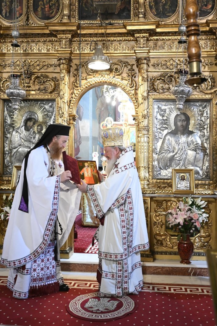 La final, părintele arhimandrit Vasile Pîrjol, starețul obștii monahale, i-a mulțumit ierarhului pentru slujire și pentru cuvântul de învățătură, oferindu-i o icoană cu chipul Sfântului Ierarh Calinic.
