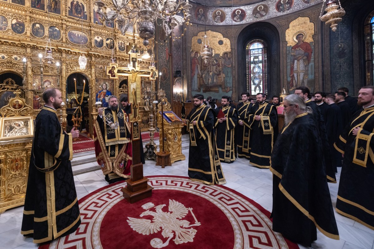 În seara Sfintei și Marii Joi, Biserica Ortodoxă a rânduit săvârșirea unei slujbe speciale, Denia celor 12 Evanghelii, care constituie Utrenia pentru Vinerea Mare. La Catedrala Patriarhală din București, rânduiala a fost săvârșită de Preasfințitul Părinte Paisie Sinaitul, Episcop‑vicar patriarhal, care la final a rostit un cuvânt de învățătură în care a explicat simbolismul scoaterii Sfintei Cruci din Altar și a așezării ei spre închinare credincioșilor în mijlocul bisericii.