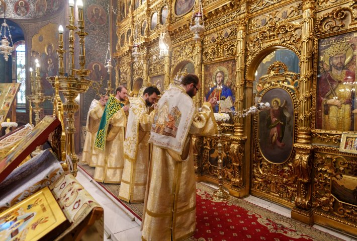 În continuare, Preasfințitul Timotei Prahoveanul, împreună cu soborul de slujitori, a săvârșit slujba Utreniei. Răspunsurile liturgice au fost oferite de membrii Grupului psaltic „Tronos” al Catedralei Patriarhale, care au înălțat cântări de laudă întru cinstirea sfântului ocrotitor al Bucureștilor.
