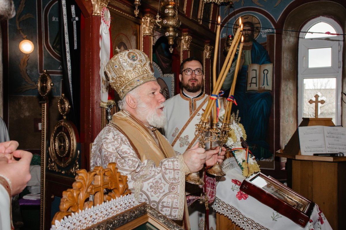 Ierarhul a săvârșit Sfânta Liturghie și a rostit un cuvânt de învățătură în care a tâlcuit pasajul evanghelic rânduit în Duminica a 4-a din Postul Mare: „Minunată și plină de miez duhovnicesc a fost pericopa evanghelică din această duminică. Ne-a arătat puterea credinței și lucrarea mântuitoare și sfințitoare a Domnului nostru Iisus Hristos. Ca pe o scară duhovnicească, a Sfântului Ioan Scărarul, ne-am urcat astăzi, clerici și credincioși, în această micuță parohie din Slava Rusă și am adus slavă lui Dumnezeu, mulțumindu-I pentru binefacerile pe care le-a revărsat asupra credincioșilor de aici, rugându-L să ne ajute și să ne binecuvânteze în continuare. Îl rugăm pe Mântuitorul să ne întărească și nouă credința să luptăm împotriva patimilor, a lucrărilor celui rău și, în același timp, să ne pregătim pentru sărbătoarea Sfintelor Paști”.