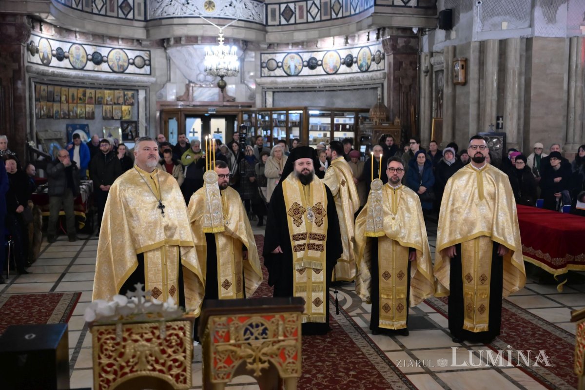 În continuare, slujba Vecerniei a fost oficiată de Preasfințitul Părinte Paisie Sinaitul, înconjurat de slujitorii parohiei bucureștene, dintre care îl amintim pe părintele paroh Gabriel Cazacu.