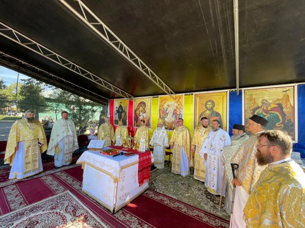 Sfânta Liturghie a fost oficiată în aer liber, la un Altar amenajat în apropierea bisericii nou-sfințite.